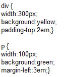 Nous avons décalé le paragraphe vert de deux caractères (2em) en haut et de trois caractères (3em) à gauche.