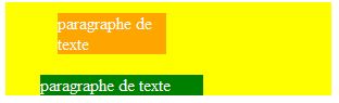 Le conteneur jaune n'est pas visible ; seul le paragraphe vert apparaît. Il occupe toute la largeur disponible,